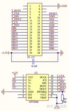 本例程使用3.0寸的TFT-LCD模块,驱动芯片为R61509VN,分辨率240*400,接口为16位的80并口,自带触摸功能,该模块原理图如下所示: