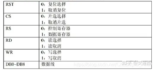 | RS | 命令/数据选择(0:读写命令,1:读写数据) |