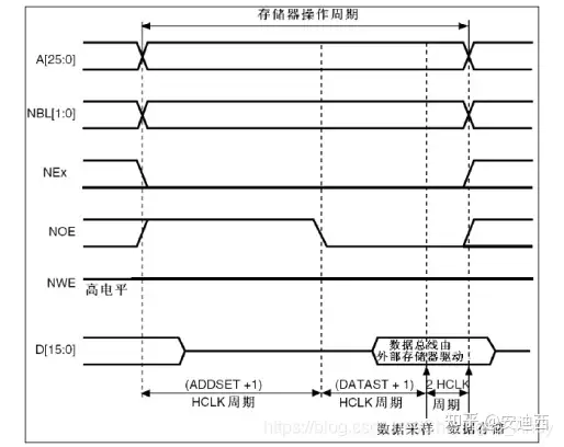 异步突发访问方式:需要设置DATAST(数据建立时间)、ADDSET(地址建立时间)、ADDHLD(地址保持时间)