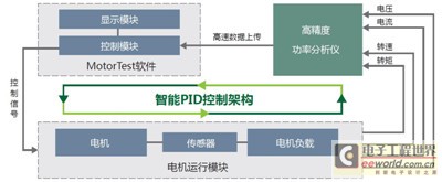 在测试过程中,高精度功率分析仪对电机的转速、转矩进行实时测量,上传到MotorTest 软件对测试数据与设定值进行比对,若两者有偏差,系统控制模块则对电机的转速\ 转矩进行负反馈调节,然后再次进行采样比对,直至测试数据与设定值在精度范围内一致,再开始进行系统测试与分析,真实呈现电机性能。
