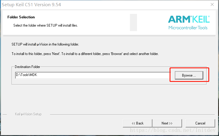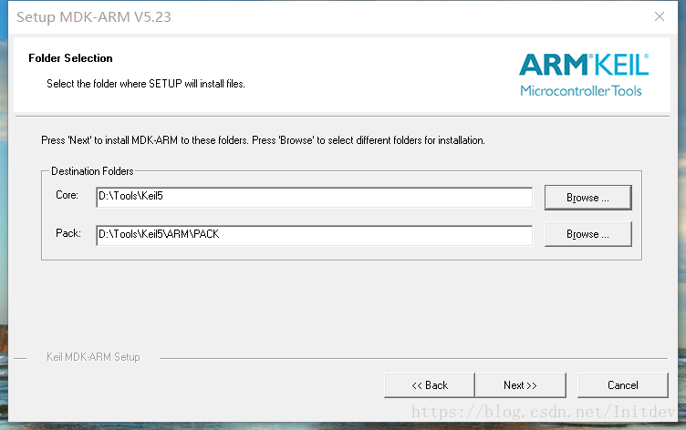 点击Core这一行的browse...,进行安装位置选择,不要和C51安装在同一文件夹。pack会自动根据core的文件夹路径自行修改,不用选择。然后点击Next。