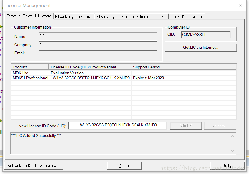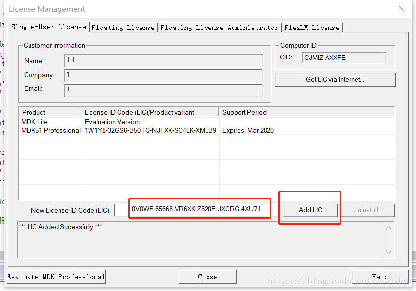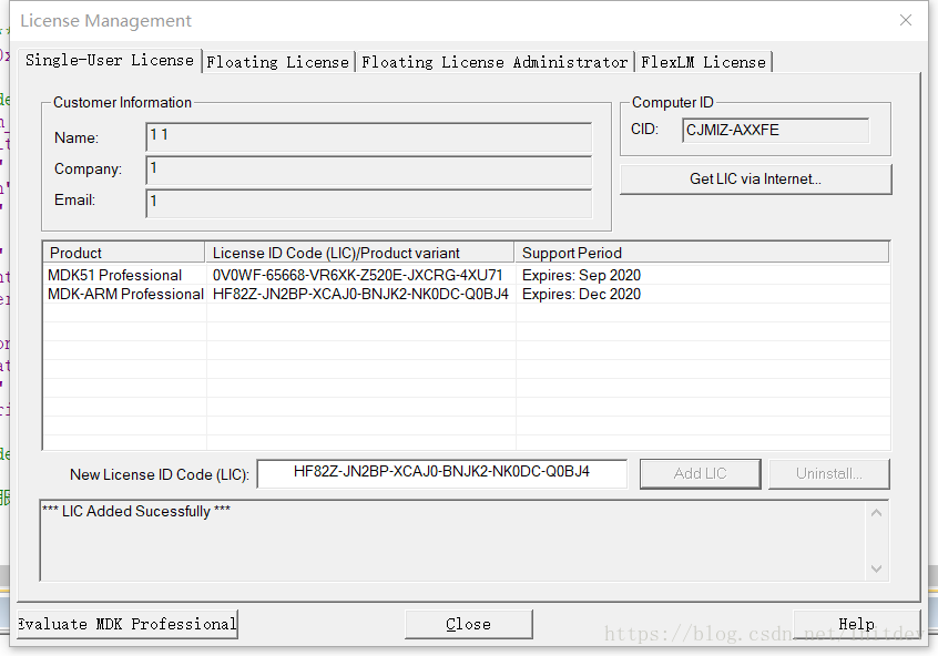 把复制好的License粘贴,单击Add,出现下图就说明添加成功了。
