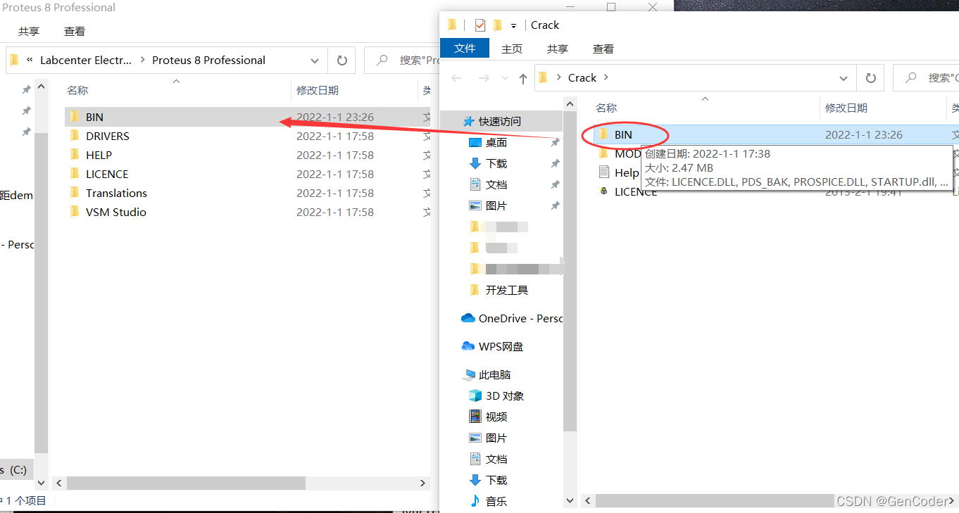 拷贝Crack文件夹中的整个BIN文件夹到C盘C:Program Files (x86)Labcenter ElectronicsProteus 8 Professional 路径下,直接替换原有的BIN文件夹