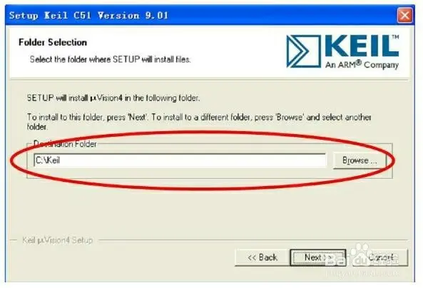 设置安装目录,根据自己的情况选中安装目录,重新设置点击Browse,这里默认C盘,设置好安装目录,点击Next