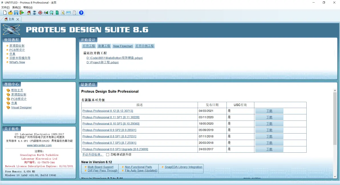 点击开始界面的创建工程,先创建一个Proteus的工程。
