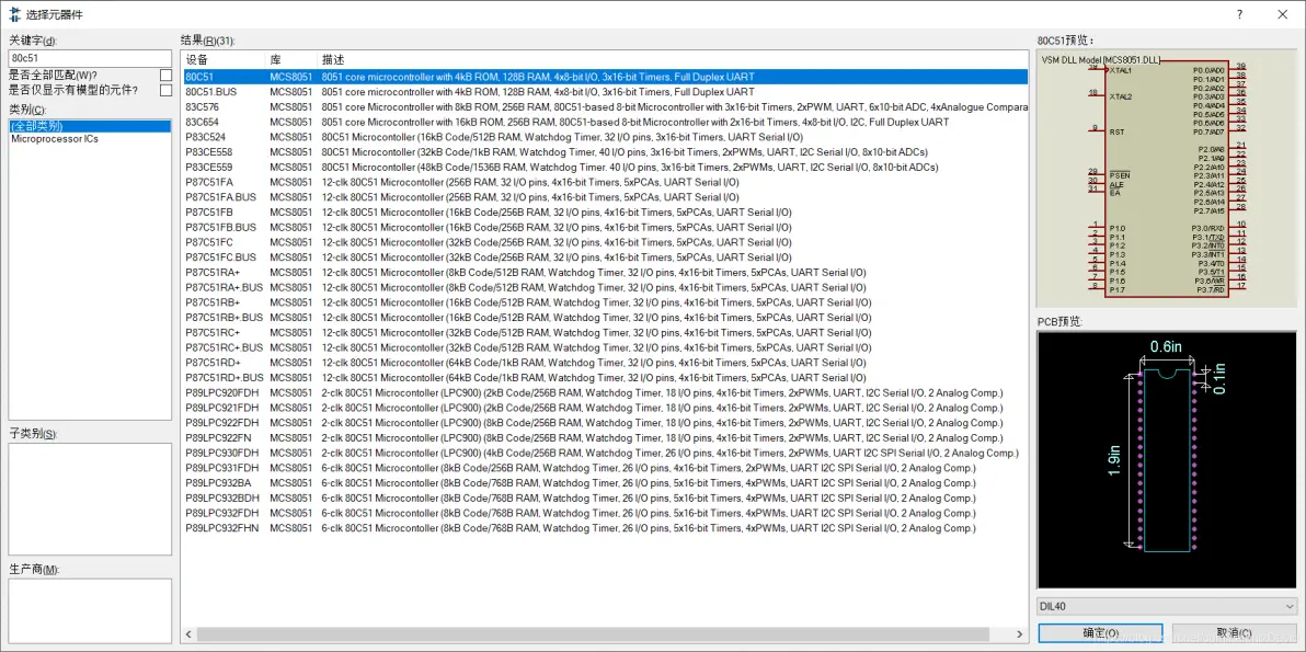 可以输入80C51进行筛选,我用的是第一个80C51。