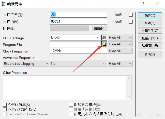 注意:Proteus的部分原件默认接了电源和接地,所以找不到电源和接地管脚。比如T80C51就是默认了接电源接地,所以没有20、40管脚。