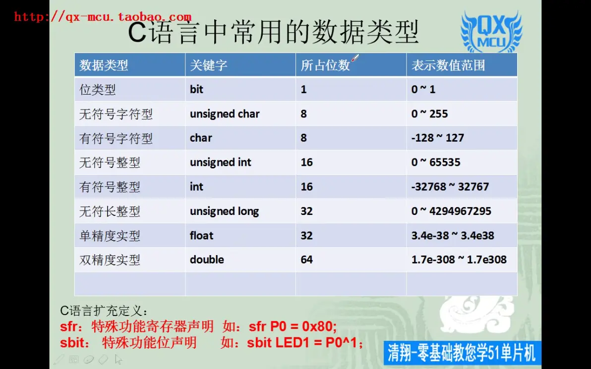 ③void: 中文翻译为'无类型',有的也叫'空类型'。常用在程序中对定义函数的参数类型、返回值、函数中指针类型进行声明。
