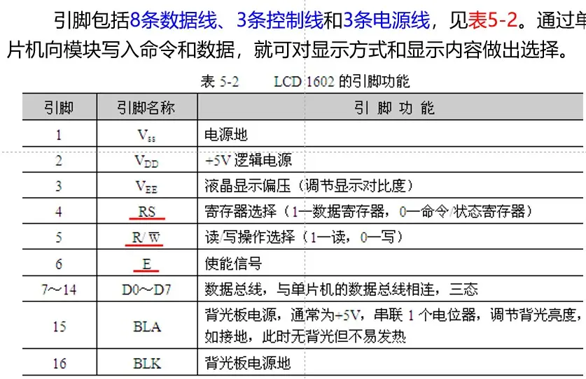 RS:发送数据(显示数据)或命令(实现我们想要的状态)到液晶。H(高电平):数据;L(低电平):命令。(具体看手册)