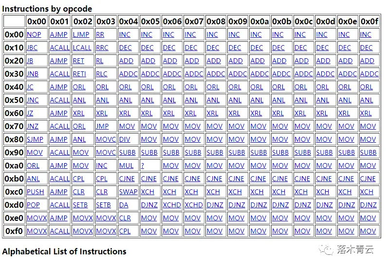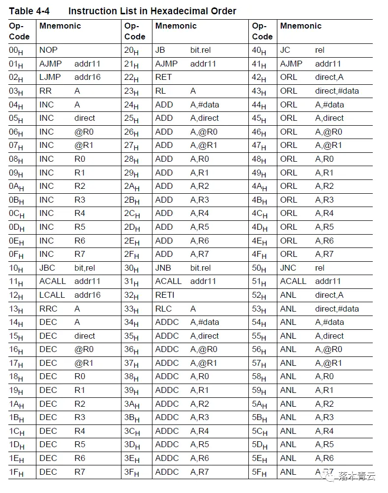 这是STC数据手册中的指令集说明,信息是挺多的,但我们似乎还是找不到这些对应关系,但是我们可以看到这里列出了每个汇编指令结合各种寻找方式,那机器码应该与这些有关吧。接下来我们继续找资料挖掘: