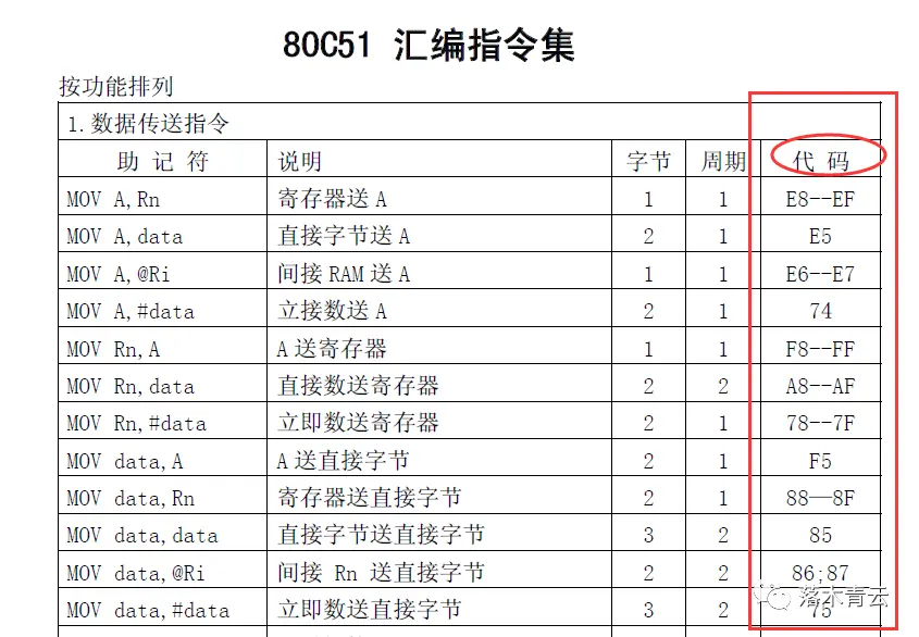 我们都知道,我们的51单片机是8位机,所以它内部的操作码就有8bit,也就是说它内部最多可以有2^8=256个操作码。现在汇编指令确定了,操作码总数确定了,剩下的就是一个萝卜一个坑式的填充它们之间的对应表了吧。