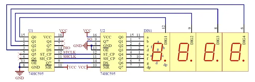 HC595_SendBytes(&dat, 2); // 清除数码管显示