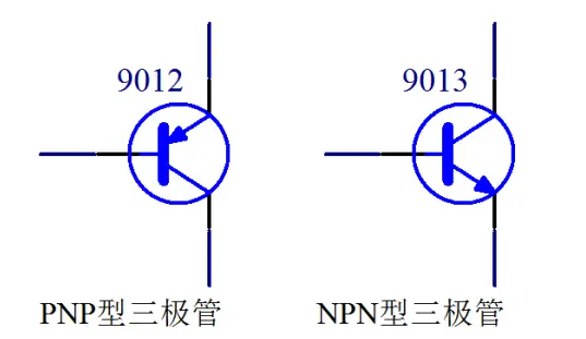三极管有许多的型号,主要分为两大类:一类是NPN型,另一种是PNP型,两种类型的原理图如下: