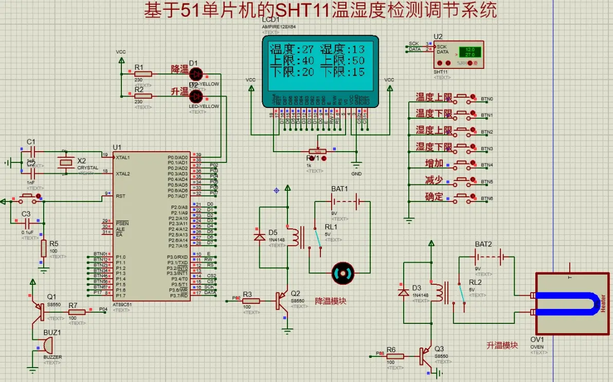 基于51单片机的SHT11温湿度检测调节系统(LCD12864显示)