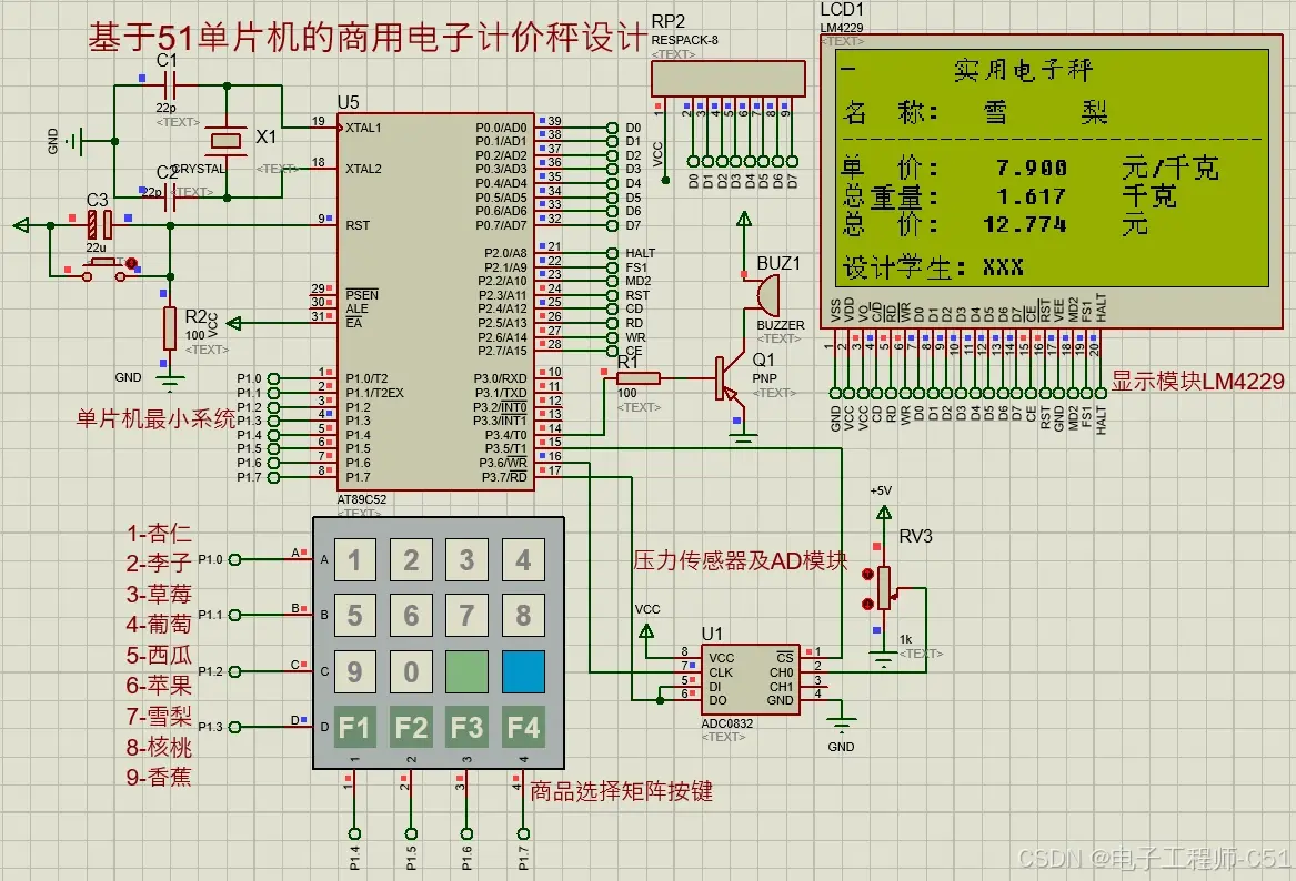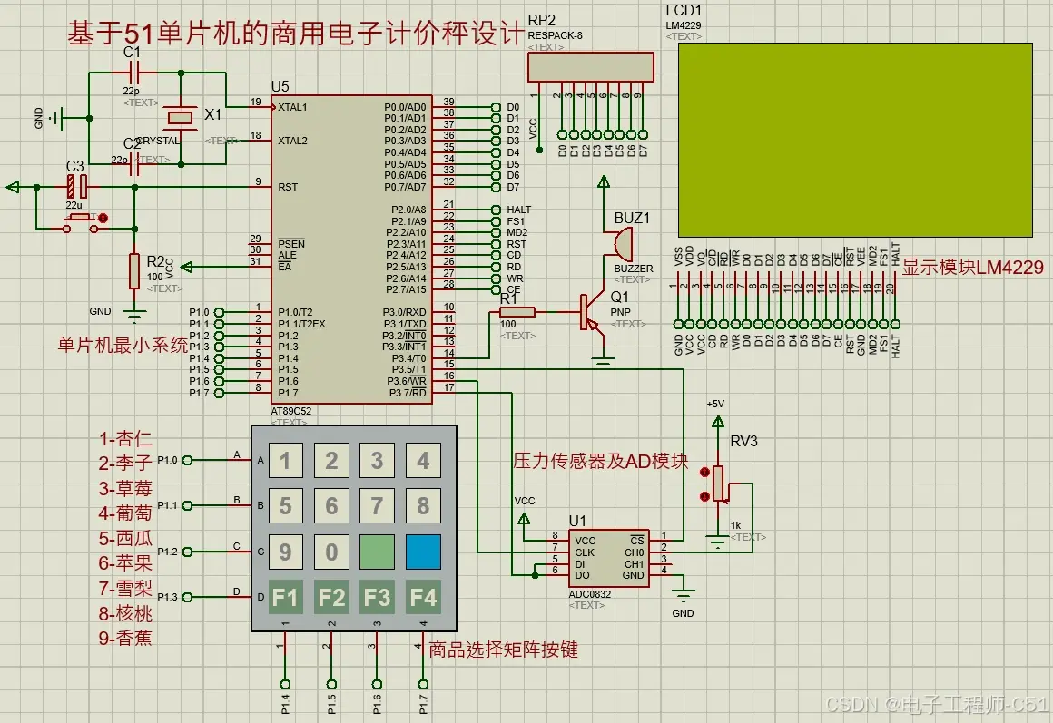 (2)LM4229显示模块显示当前称重台上物品重量;