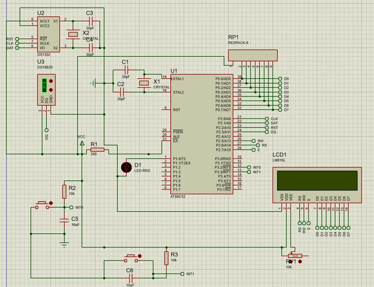 51单片机汇编语言通过LCD1602、DS1302、DS18B20显示时间温度等