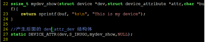 22 ssize_t mydev_show(struct device *dev,struct device_attribute *attr,char *buf){