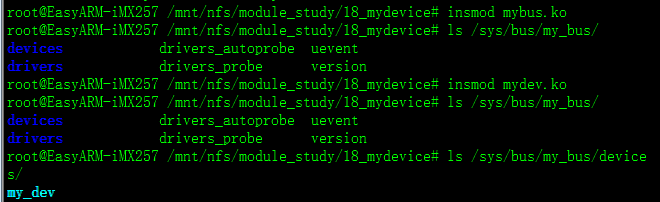 然后,在 my_bus/devices/ 目录下又生成了 my_dev 目录