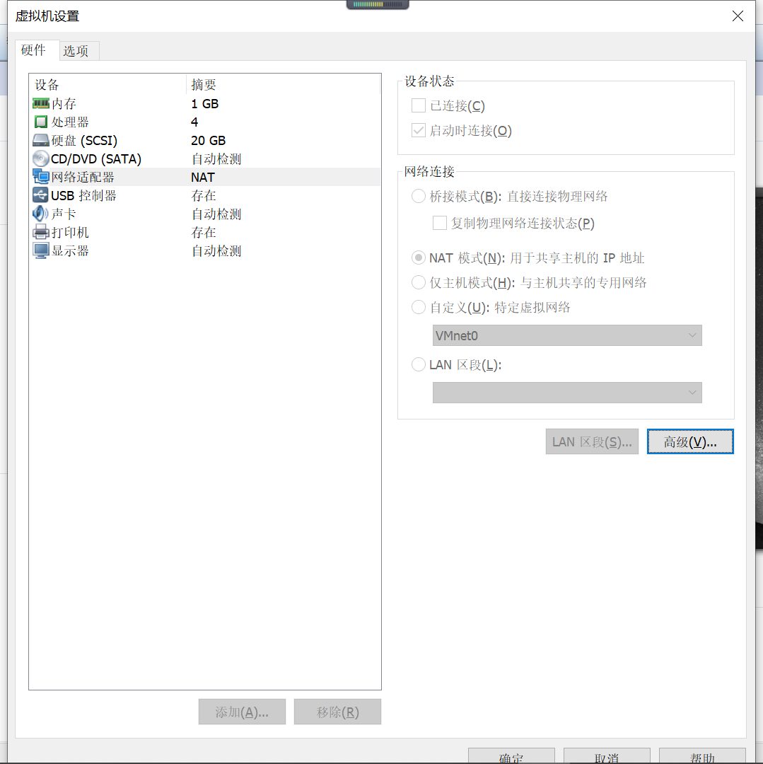 1、虚拟机底下的设置->虚拟机设置灰色无法添加新的网络适配器,由于处于关机或挂起状态,将虚拟器开启后再查看就可以了。