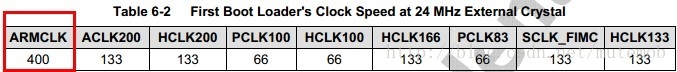 由上图查出可知,ARMCLK的默认频率为400MHz