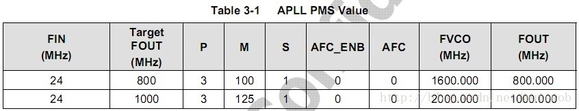 P357 S5PV210_UM_REV1.1.pdf -- Table 3-1. APLL PMS Value
