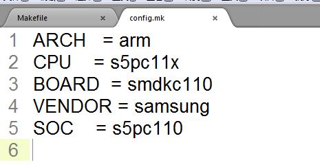 5 export ARCH CPU BOARD VENDOR SOC // arm s5pc11x smdkc110 samsung s5pc110 由.mk配置文件可知