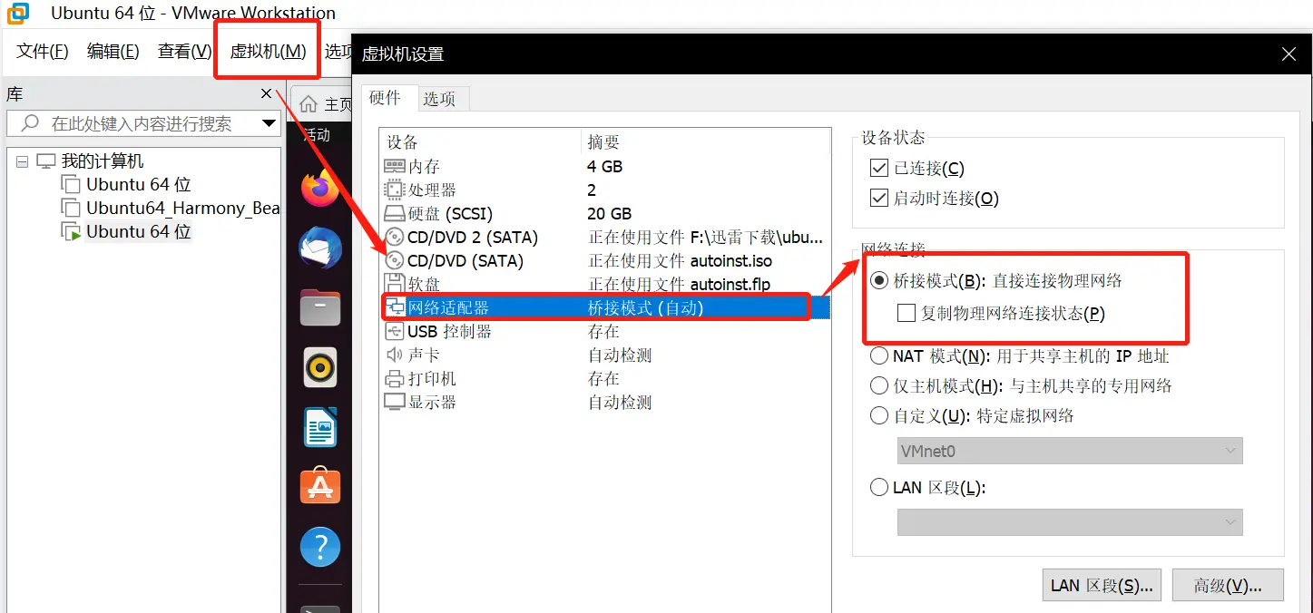 把虚拟机的网络连接方式改成桥接模式