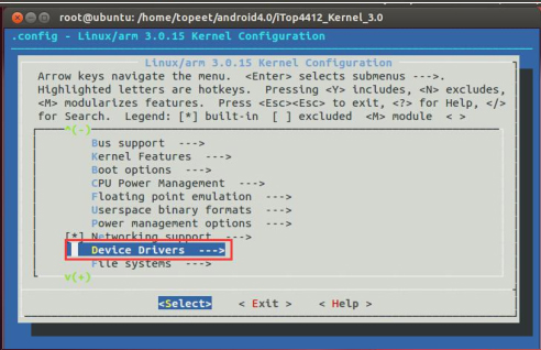 打开之后,如下图所示。找到“Device Drivers ---> ”选项。