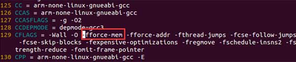 执行脚本成功以后,我们打开Makefile,找到-fforce-mem,然后删除他,如下图所示: