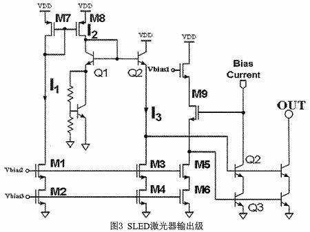 激光器输出级如图3所示,它提供电流来驱动激光器,并直接影响SLED的输出。