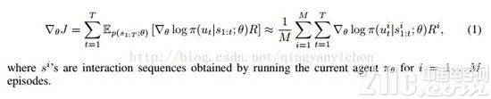 公式(1)也叫做增强学习的规则,它包括运用当前的策略运行agent去获得交互序列,然后根据可以增大奖励信号的行为调整theta。它的训练过程就是用增强学习的方法学习具体任务策略。关于给定任务,根据模型做出的一系列决定给出表现评价,最大化表现评价,对其进行端到端的优化。