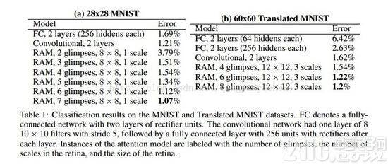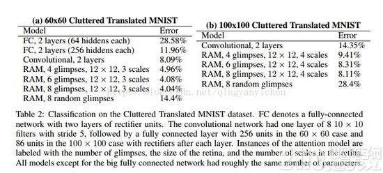 把注意力模型和全连接网络以及卷积神经网络进行比较,实验证明了模型可以从多个glimpse结合的信息中成功学习,并且学习的效果优于卷积神经网络。