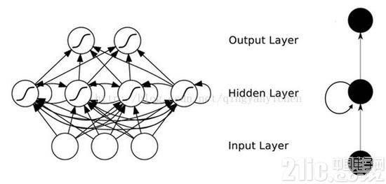 这个网络最直观的印象是什么呢,就是线多。在传统的神经网络模型中,是从输入层到隐含层再到输出层,层与层之间是全连接的,每层的节点之间是无连接的。但是这种普通的神经网络对于很多问题却没有办法。例如,要预测句子的下一个单词,一般需要用到前面的单词,因为一个句子中前后单词并不是独立的。RNNs之所以称为循环神经网路,即一个序列当前的输出与前面的输出也有关,网络会对前面的信息进行记忆并应用于当前输出的计算中,具体的表现形式为即隐藏层之间的节点不再无连接而是有连接的,并且隐藏层的输入不仅包括输入层的输出还包括上一时刻隐藏层的输出。理论上,RNNs能够对任何长度的序列数据进行处理。但是在实践中,为了降低复杂性往往假设当前的状态只与前面的几个状态相关,下图便是一个典型的RNNs: