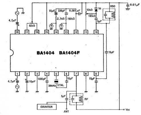 与单管的转发器比较,BA1404不仅可以传送立体声信号,而且音质也有了明显提高,但是分离度、频响等指标仍然不是很理想,BA1404的音质距离欣赏高质量音乐仍然有相当大的差距。由于BA1404内部采用的仍然是LC振荡器,因此频率的稳定性仍然不够好,容易产生频漂的现象。现在市面上有相当多的采用BA1404的车载音频转发器或者无线耳机成品出售。