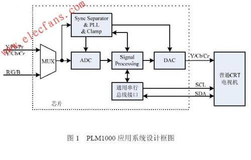 PLM1000芯片将输入的模拟电视信号数字化,再进行数字信号处理,最后将数字信号还原为模拟电视信号后输出至模拟电视。它支持大部分高清制式的视频信号,如480P、576P、720P、1080i、1080P以及VGA信号,并支持4:3、16:9以及可配置的缩放处理等功能;不带外部存储器,所有操作都在片内完成,节省了成本;支持亮度、色度、饱和度、色度空间转换和RGB转换等功能。