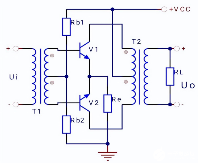 图:乙类推挽功率放大器电路图