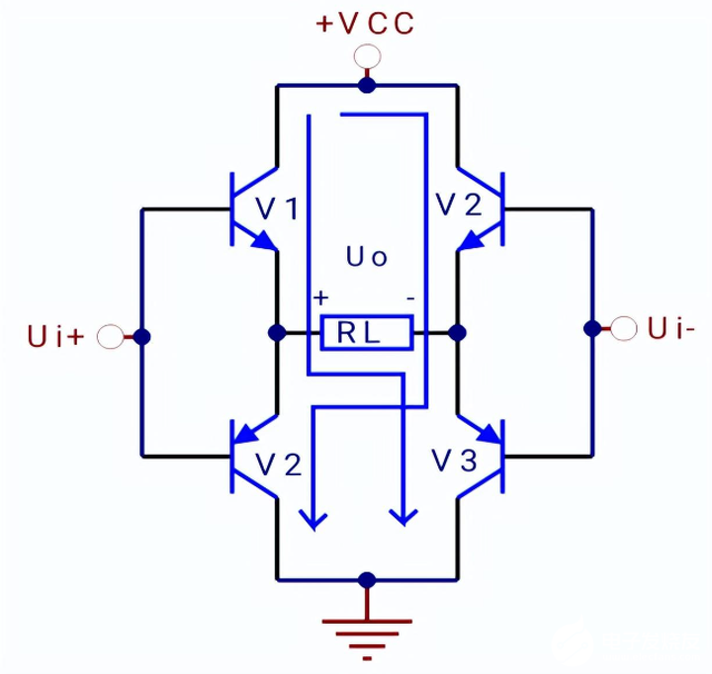 在OCL中采用了双电源供电,所以为了实现单电源供电,且不用变压器和大电容,最终解决方案是桥式推挽功率放大器(BTL)电路。