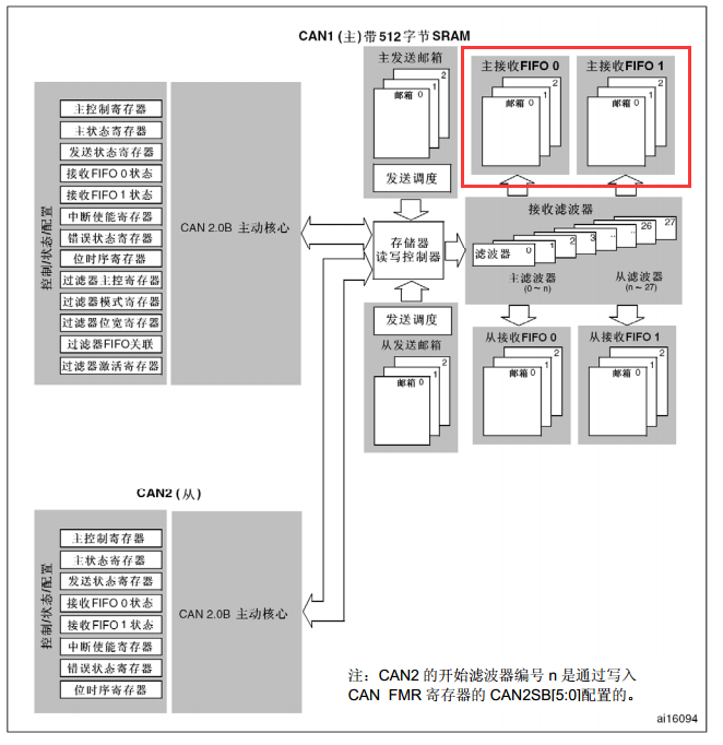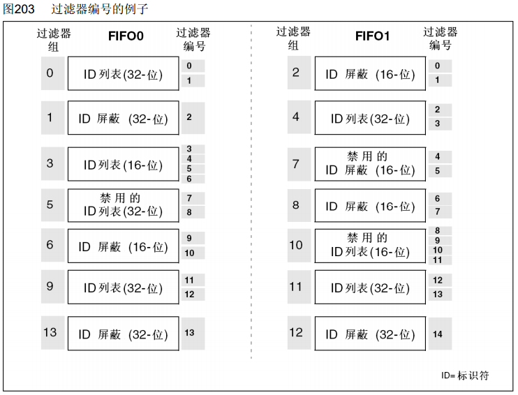 1. STM32F103有0-13共14个过滤器组,每个过滤器组都可以绑定指定的FIFO。