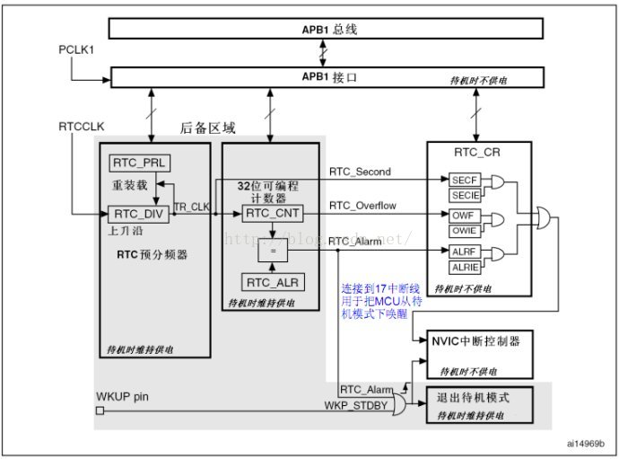 后备接口为:RTC与APB1总线连接的的APB1接口,系统通过APB1接口访问RTC寄存器;