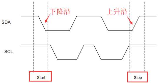 SCL时钟电平为低, 可以改换SDA数据线的电平,在SCL上升沿的过程将SDA数据发送出去。