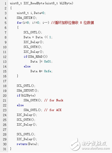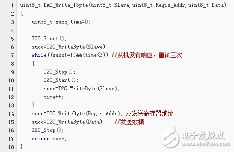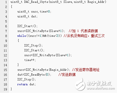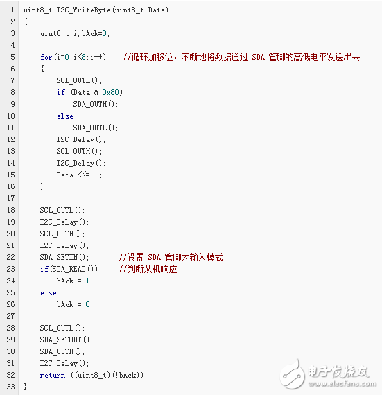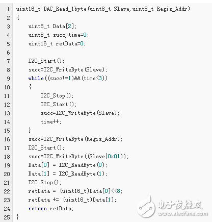 以下代码为通过调用上面的基本代码来实现 I2C 通信