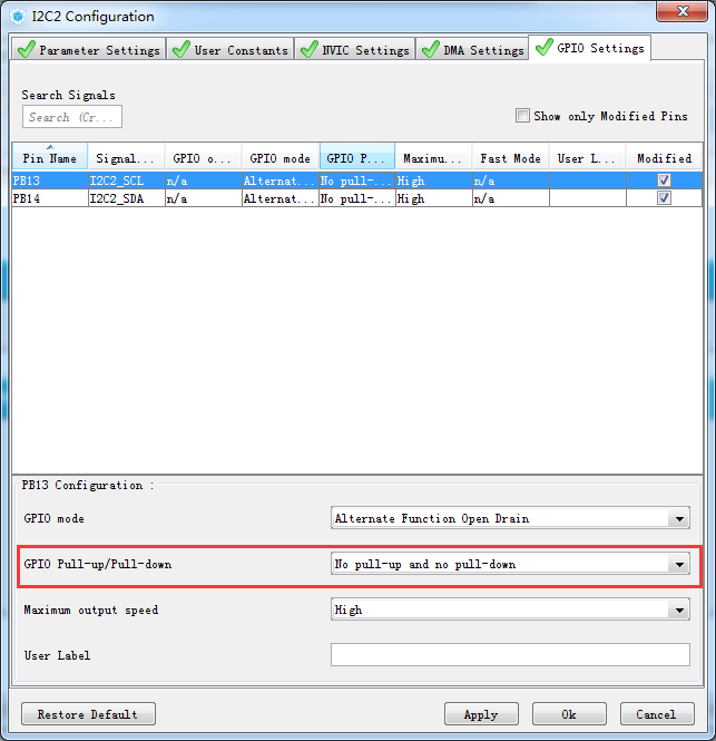 还有一个要注意的,就是IIC的SDA、SCK引脚要配置成NPP模式,不然容易出现信号线忙,检测不到从机的情况。