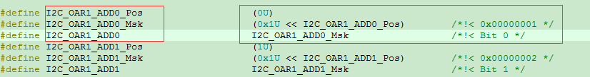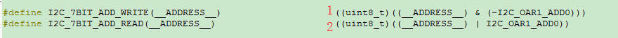 上面跳转到这里我们就接近真相了,上图1是跳转下去的 IIC 写函数的地层,2 是 IIC 跳转下去的读函数的地层,这里 ADDRESS 就是用户写进IIC发送读取函数里的寻址地址了,接下来到重点了,对于I2C_OAR1_ADD0 我们再次跳转分析下去看看;
