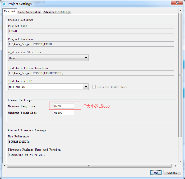 有一种可能是STM32CubeMX分配的堆空间太小造成的,这里改变其大小即可,如下:
