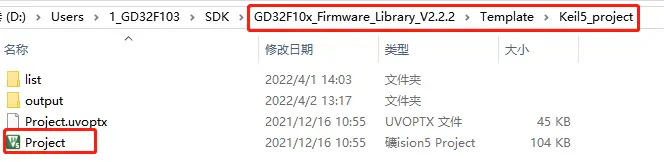 路径:SDKGD32F10x_Firmware_Library_V2.2.2TemplateKeil5_projectProkect