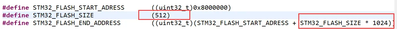 为了一致性,可以将 STM32_FLASH_SIZE 定义为 ((512 * 1024)) 。