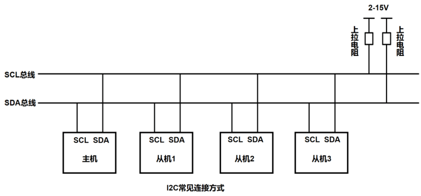 在总线上,可以有多个主设备和多个从设备,但在通信时只能有一个主设备控制总线(主设备的选择由仲裁机制决定),总线上每个设备都有一个唯一的地址(7位或10位)。
