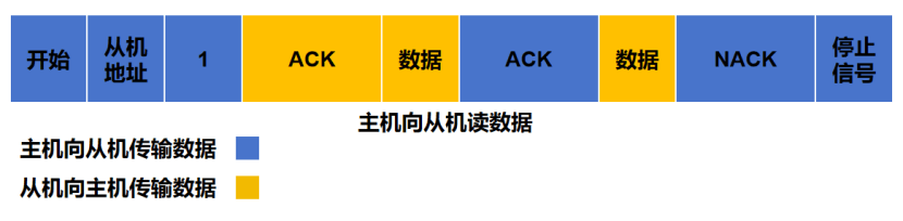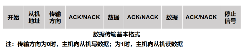 数据以字节为单位传输,主机每写一个字节后都要等待从机的应答信号ACK或非应答信号NACK,主机每读一个字节后都要向从机发送应答信号ACK或非应答信号NACK;只有在接收到应答信号后,才会继续读/写字节。