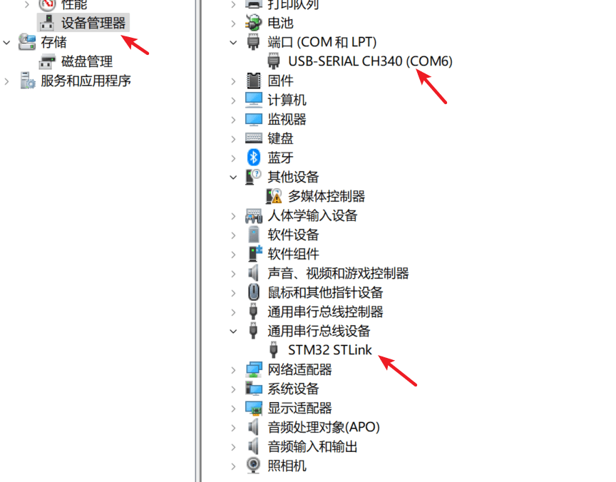 确定驱动安装正确,设备管理器中,可以看到这两个。
