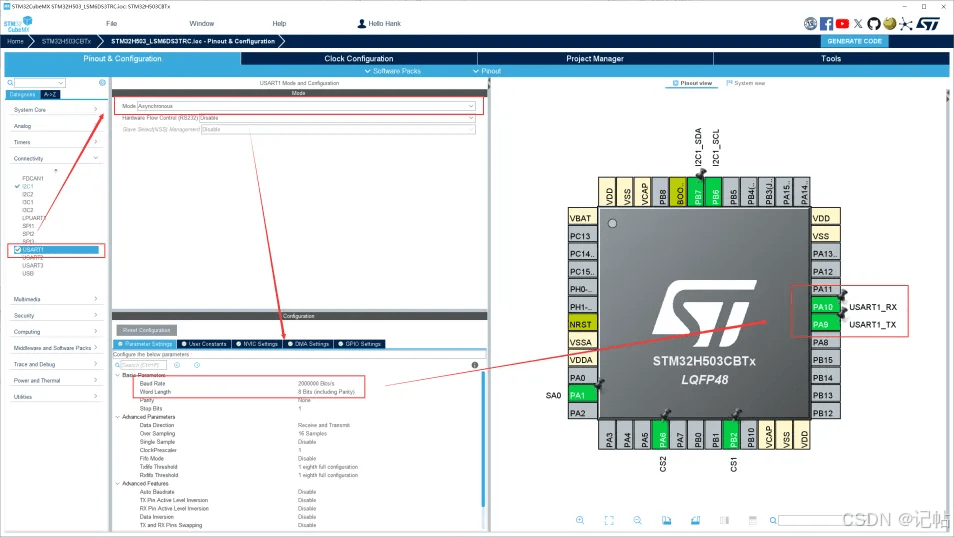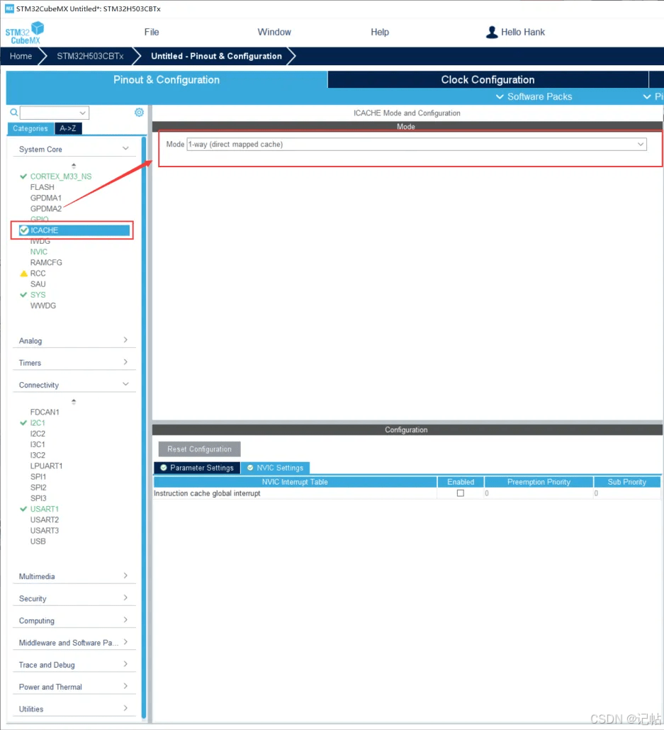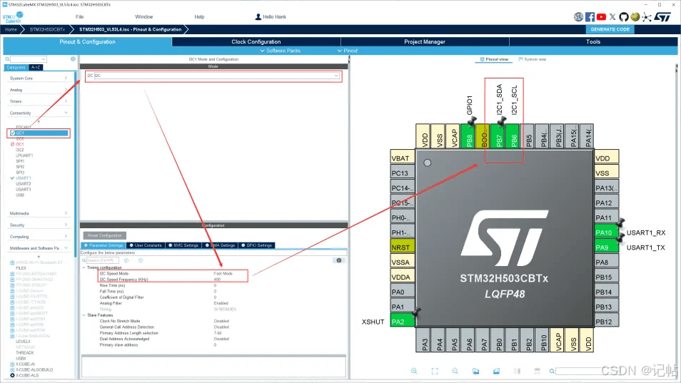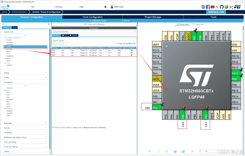 用STM32CUBEMX生成例程,这里使用MCU为STM32H503CB。
